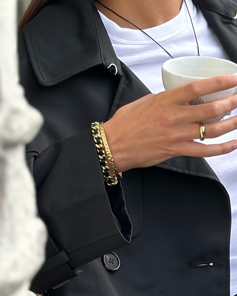 Adelia armband av äkta italienskt läder och pansarlänk i guldpläterat stål kan du enkelt bära som ett statement smycke eller lager-på-lager med andra armband.